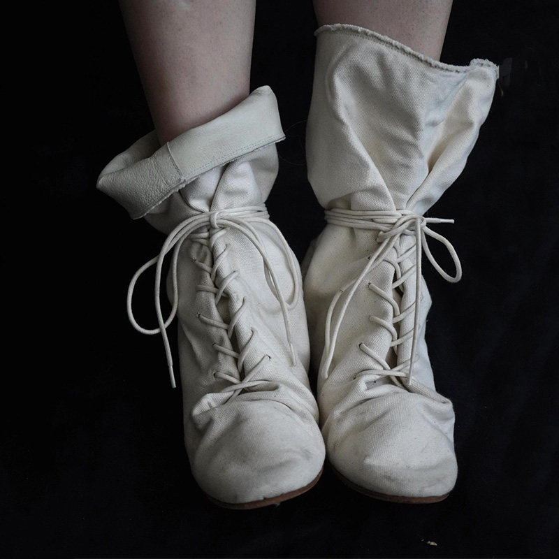 - 高帮白色帆布鞋女