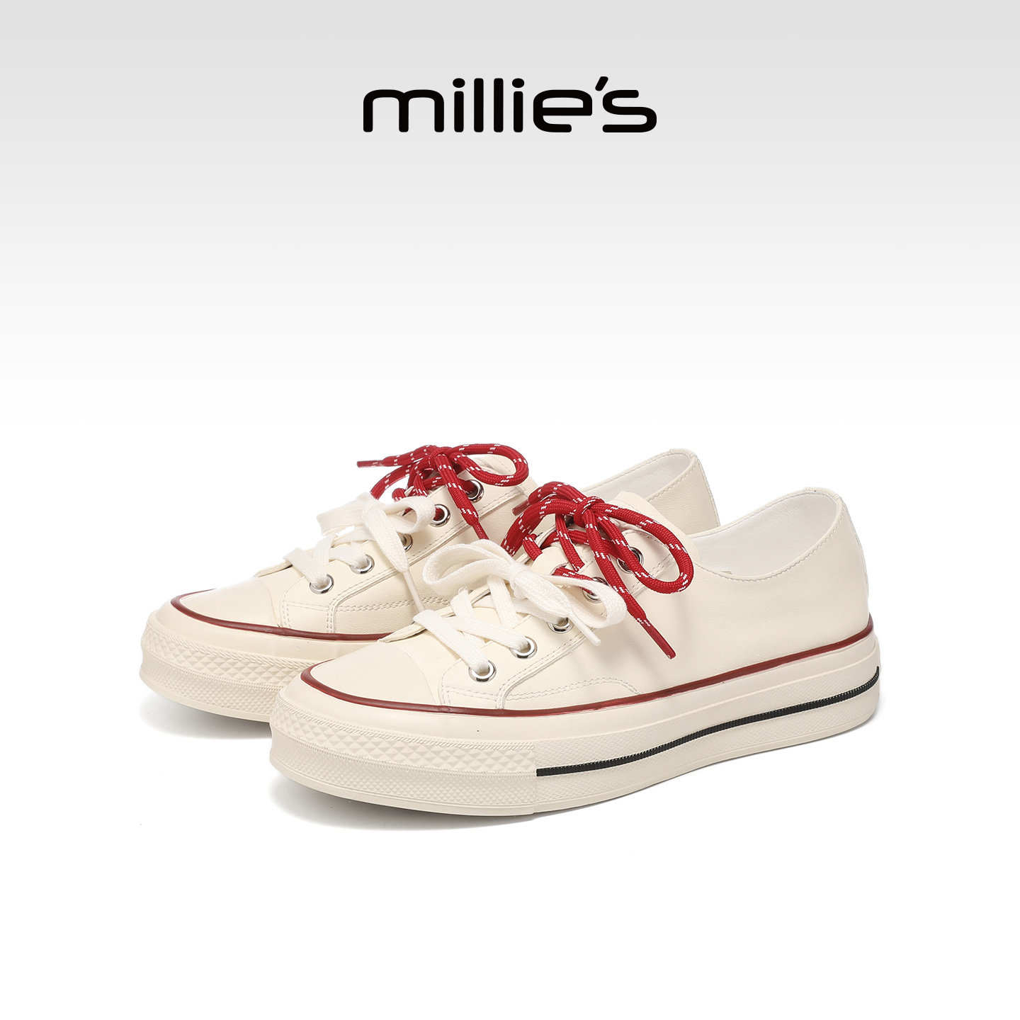 MILLIE'S/妙丽简约风白色系带帆布鞋女平底百搭休闲板鞋春夏新款