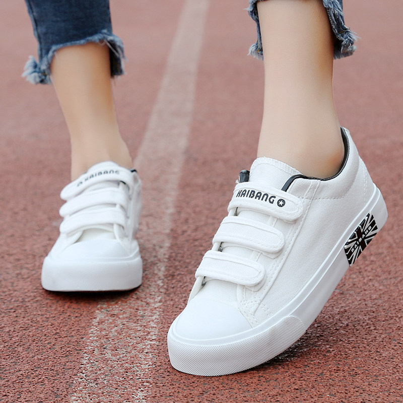 夏季大码小白鞋女41-43码白色帆布鞋女韩版魔术贴平底学生鞋板鞋