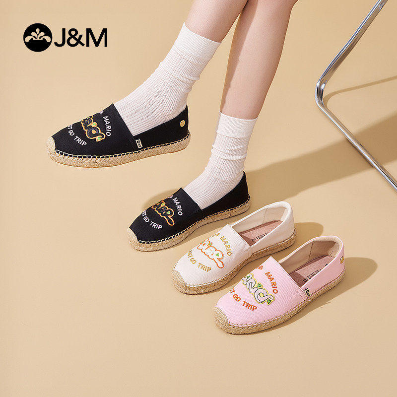 JM快乐玛丽复古渔夫鞋白色帆布女鞋2025夏季新款一脚蹬平底凉鞋女