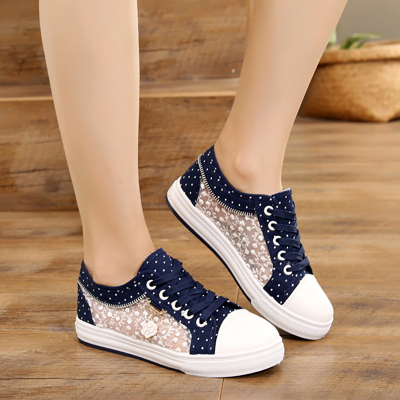 夏季平底白色学生板鞋女韩版平跟系带帆布鞋镂空透气女休闲小白鞋