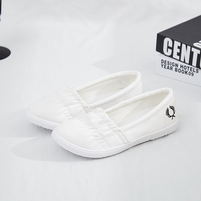 蓓尔新款白色浅口帆布鞋女鞋透气小白鞋韩版学生布鞋平底春夏板鞋