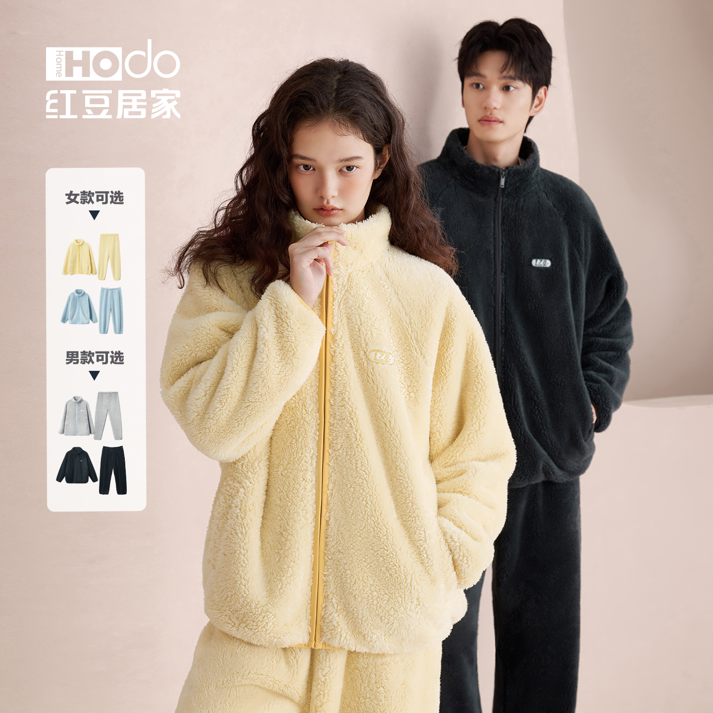 红豆居家服可外穿情侣睡衣珊瑚绒冬季立领拉链男抗静电加厚女套装