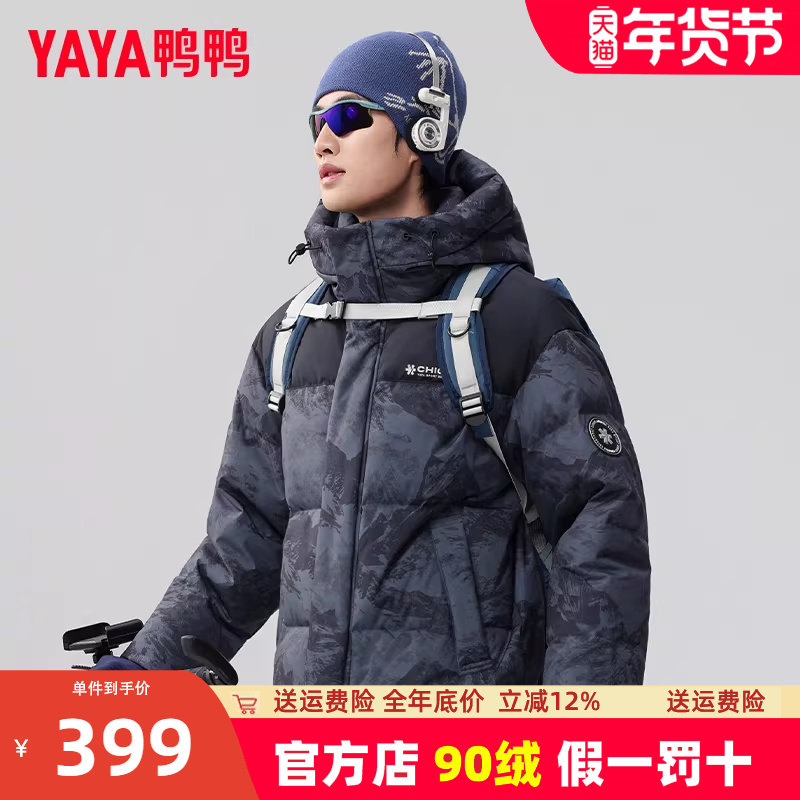 鸭鸭羽绒服男短款2025冬季新款连帽加厚雪山迷彩青少年保暖外套Y