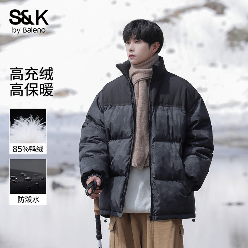 班尼路迷彩羽绒服男士冬季2026新款潮牌撞色宽松加厚青少年外套E