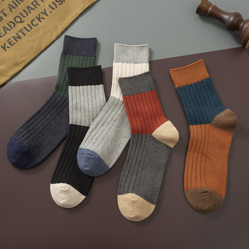 个性撞色男袜潮中筒袜彩色花袜子秋季创意拼色纯棉透气礼盒袜子男