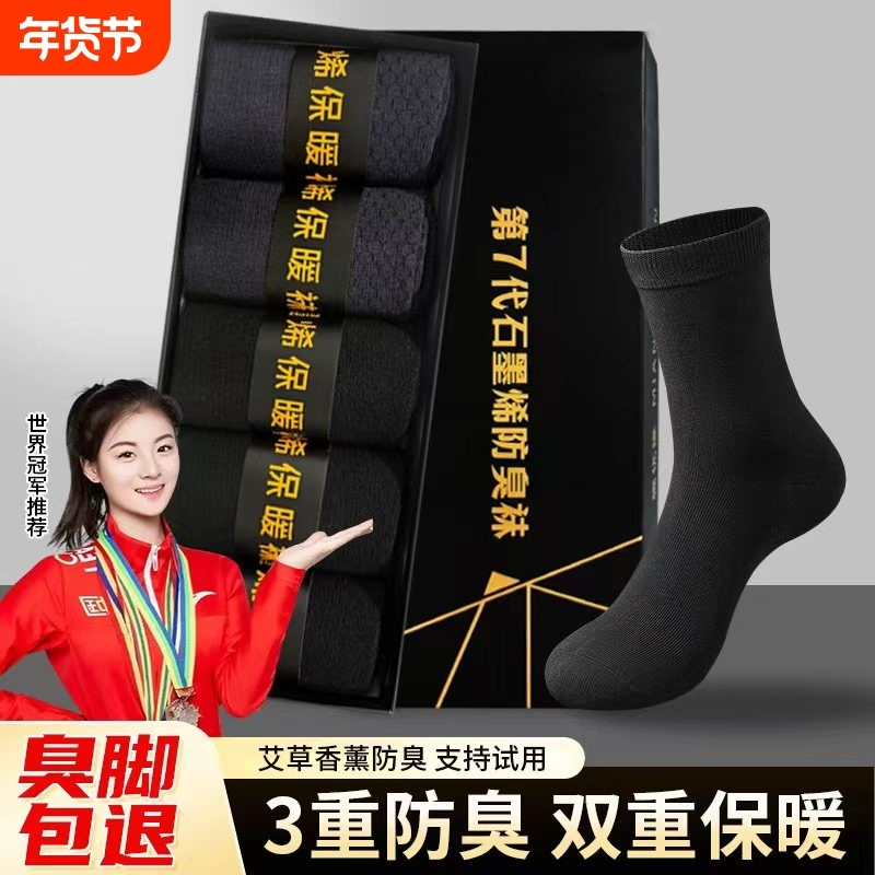 石墨烯保暖袜子男秋季中筒袜纯棉男袜棉袜秋冬男士好发热防臭抗菌