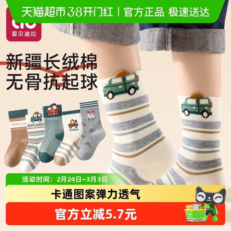 儿童袜子纯棉中筒袜男孩秋季男童宝宝a类春秋小孩全棉新款童男袜
