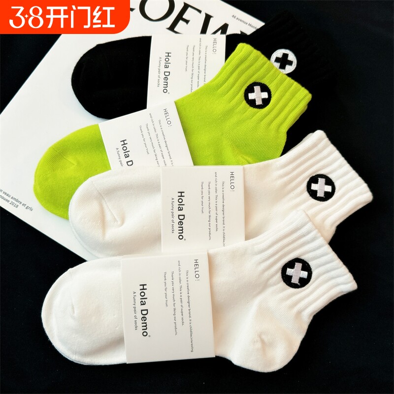 白色袜子女中筒袜春秋季纯棉ins潮运动长筒袜夏季纯色长筒男袜
