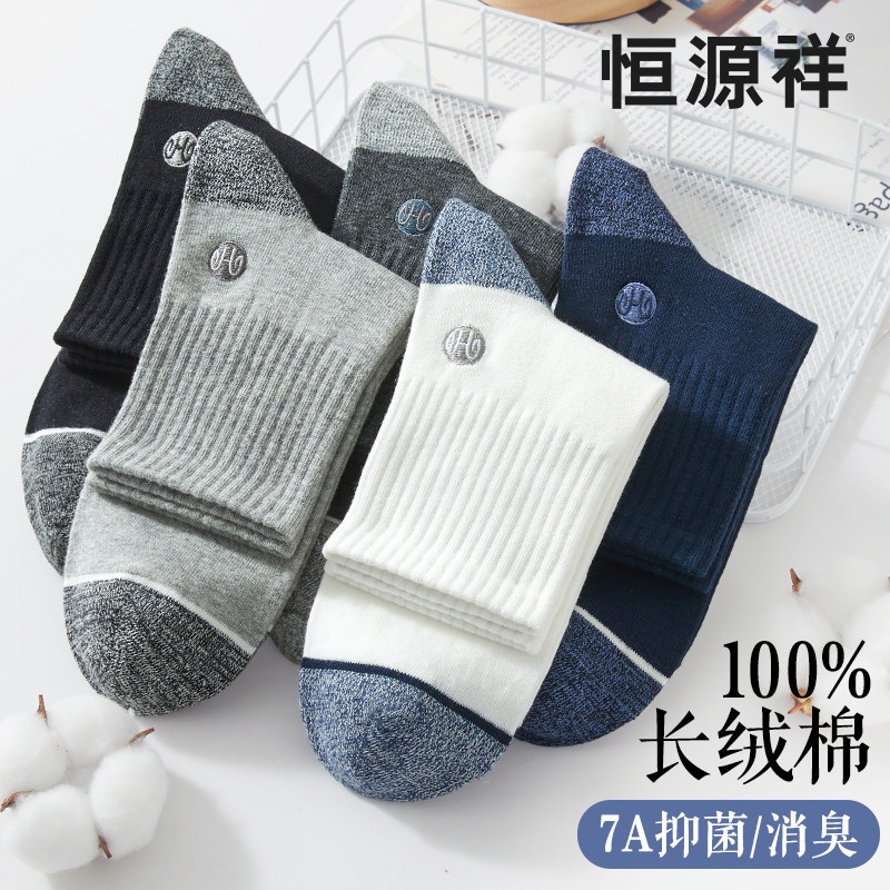 恒源祥袜子男纯棉无骨抗菌中筒男袜秋季薄款吸汗透气运动男士长袜