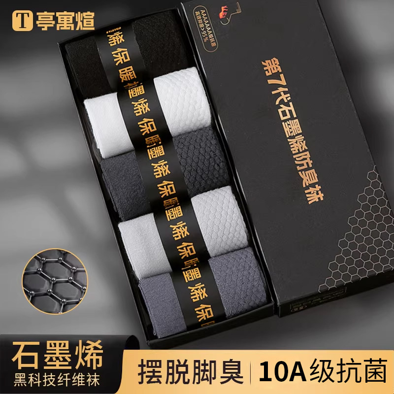 男士袜子男款纯棉春秋季中筒袜石墨烯男袜黑色防臭棉袜秋冬长筒袜