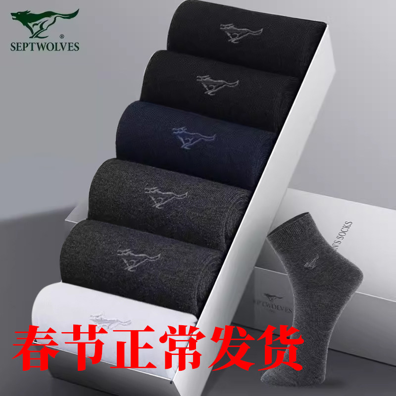 七匹狼全棉男袜子男士纯棉抗菌中筒袜春秋季透气吸汗休闲商务礼盒