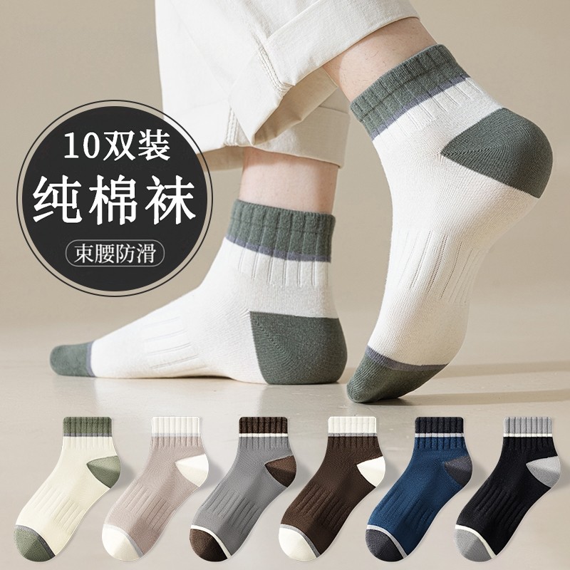 袜子男士纯棉长短袜中筒夏季防臭吸汗春秋季黑白棉袜船袜男袜10双
