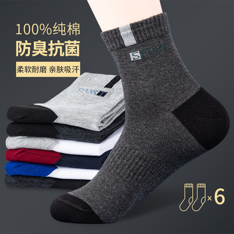 精梳棉袜子男士纯棉抗菌保暖中筒秋季男袜长运动全棉防臭吸汗秋冬