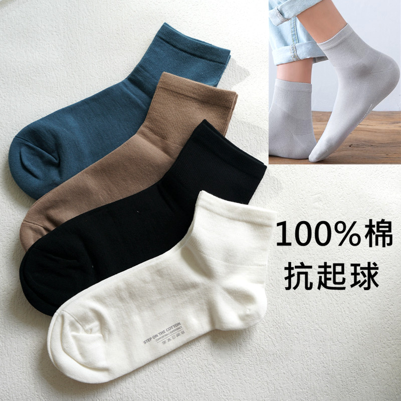 春秋季男袜子100%纯棉中筒袜潮纯色短袜吸汗防臭运动袜白色全棉袜