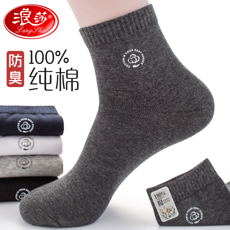 浪莎袜子男中筒袜男袜纯棉防臭吸汗全棉秋季吸汗休闲运动男士短袜