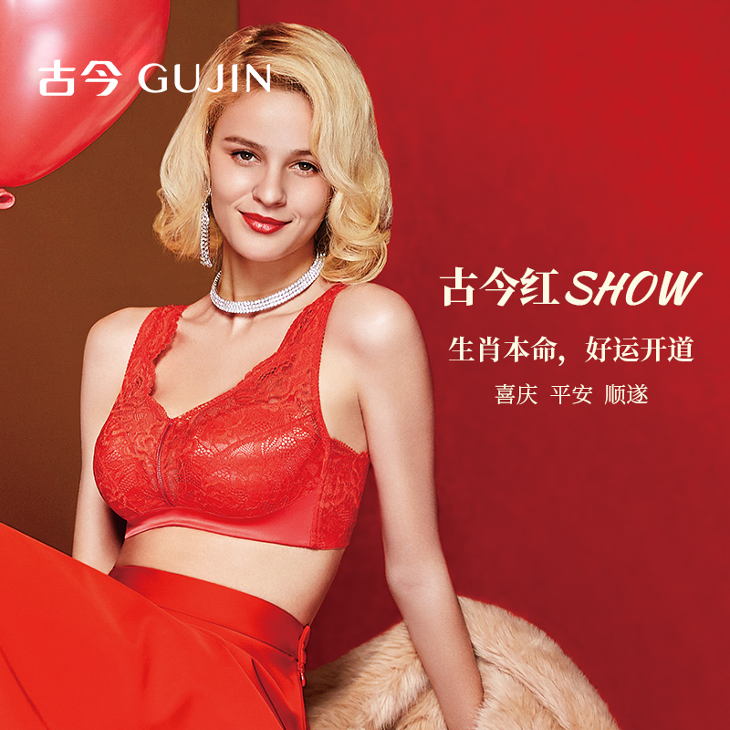 古今女士文胸舒适无钢圈上薄下厚聚拢文胸罩杯红色内衣女0K888