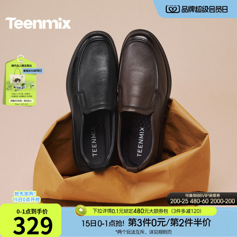 天美意复古小羊皮一脚蹬皮鞋男春新款商务休闲皮鞋爸爸鞋商场同款