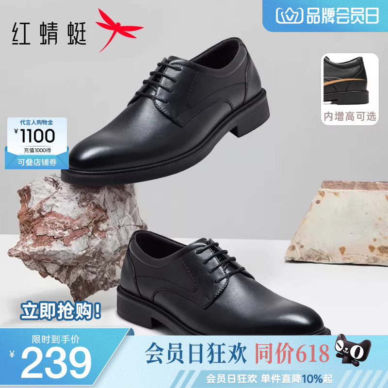 红蜻蜓正装皮鞋春季新款商务真皮男鞋休闲厚底增高结婚新郎鞋男士