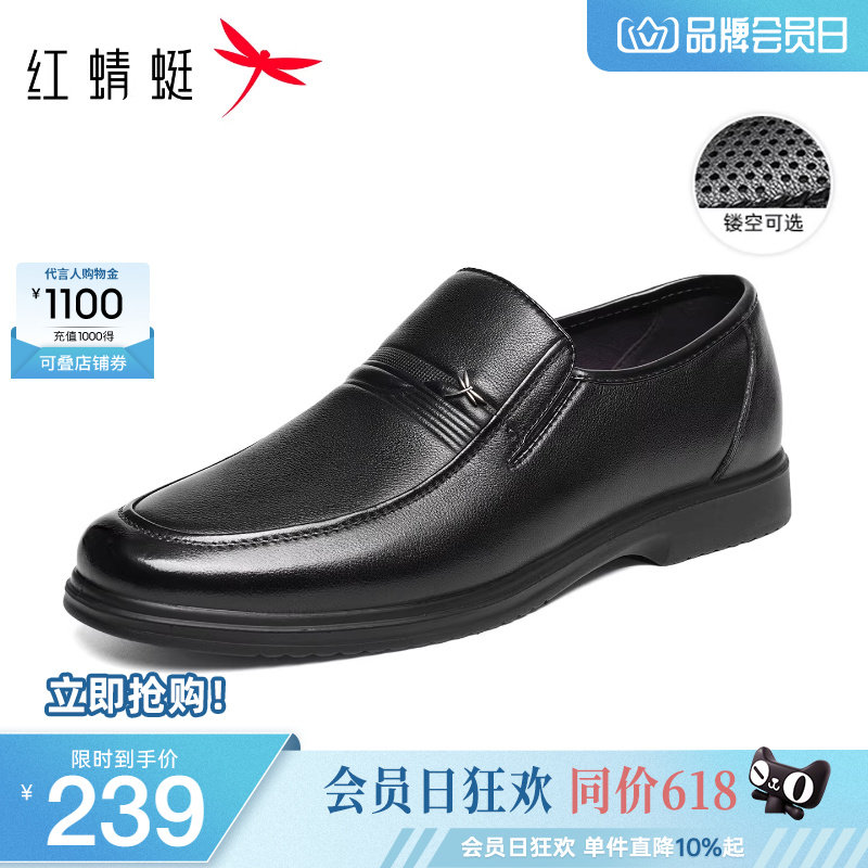 红蜻蜓男鞋牛皮透气中老年休闲商务皮鞋正品高档一脚蹬懒人爸爸鞋