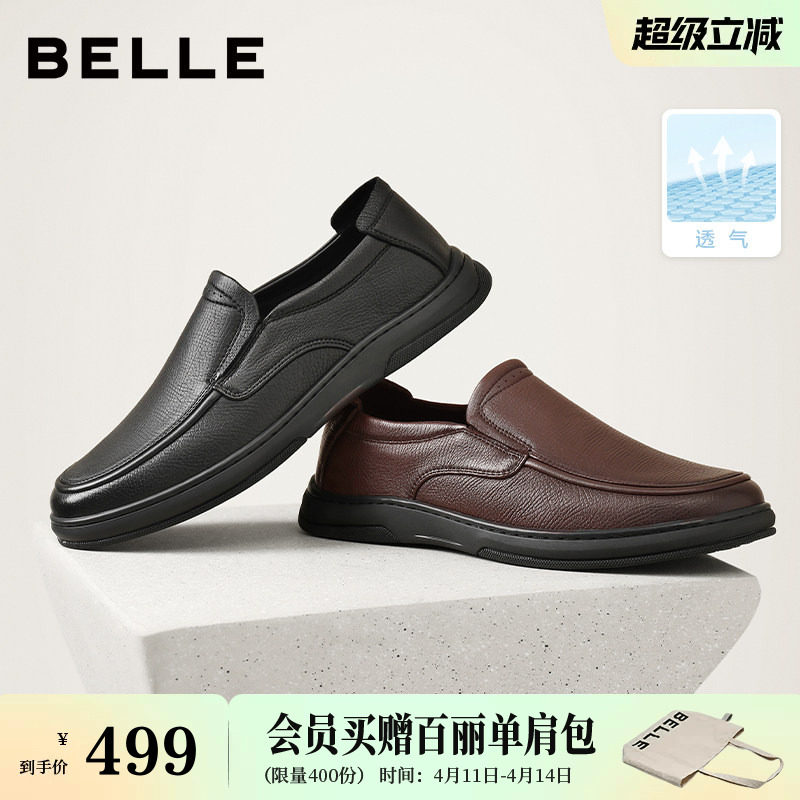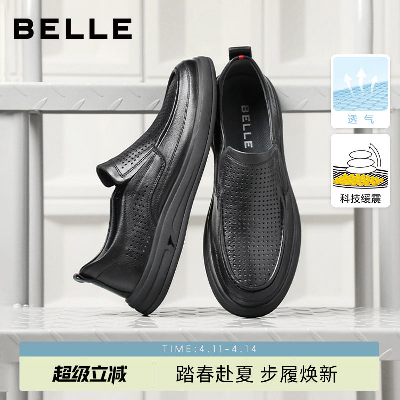 百丽男士软底商务休闲皮鞋春夏季新款一脚蹬透气真皮爸爸鞋A1010A