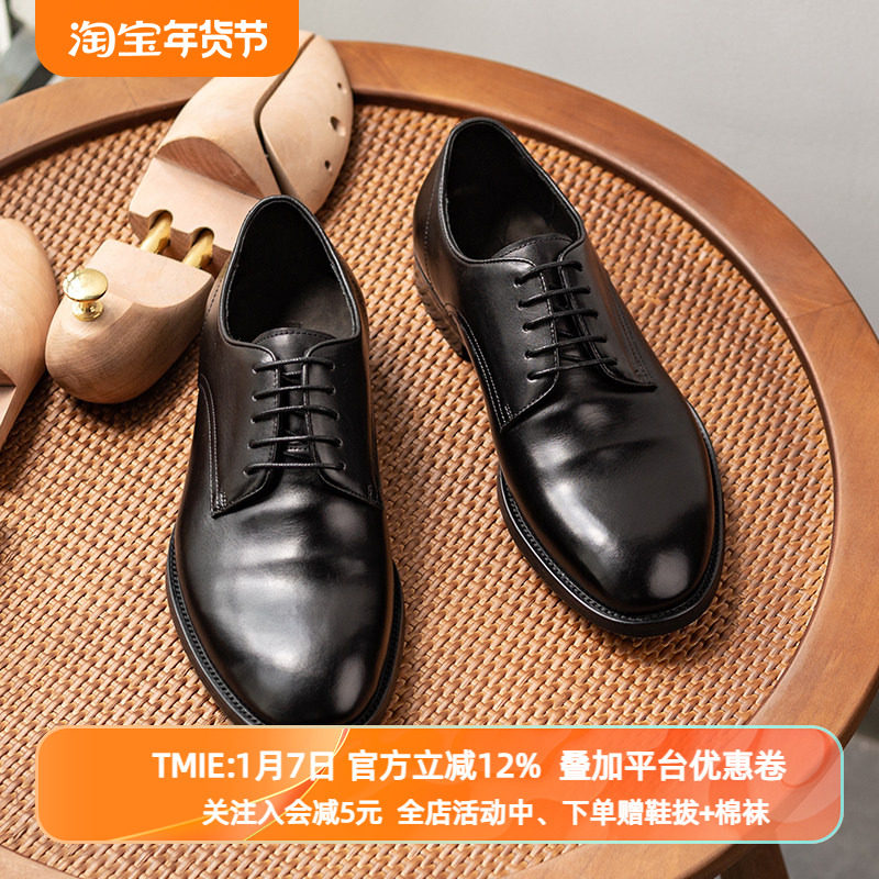 新款男士头层纯牛皮鞋德比鞋软皮软底新郎结婚鞋英伦商务休闲皮鞋