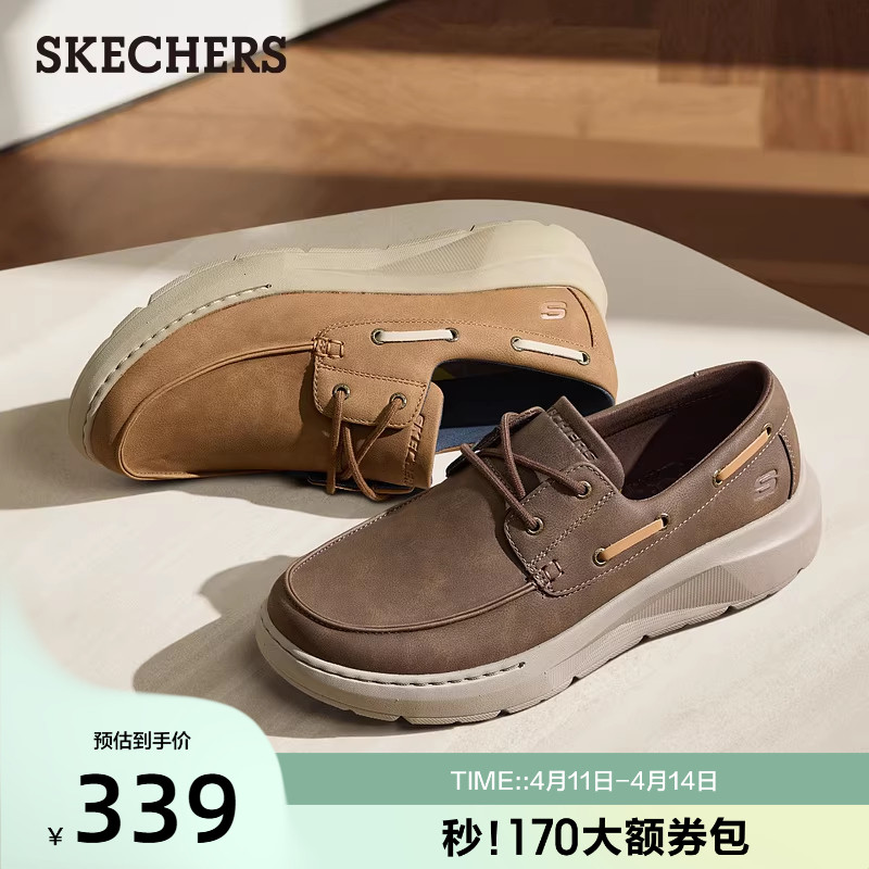 斯凯奇休闲皮鞋男款2026夏季新款百搭厚底舒适通勤商务鞋工作鞋子