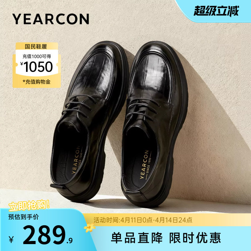 意尔康皮鞋男春季头层牛皮正装商务大码圆头休闲鞋新郎结婚德比鞋