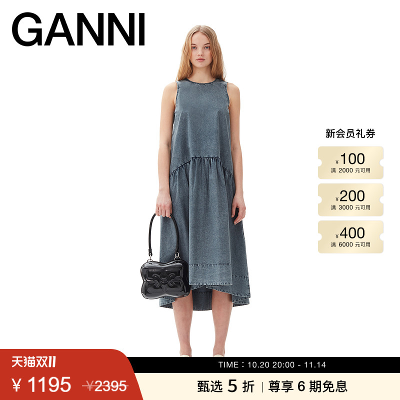 【甄选折扣】GANNI女装 海军蓝棉府绸A字中长连衣裙 W0125683