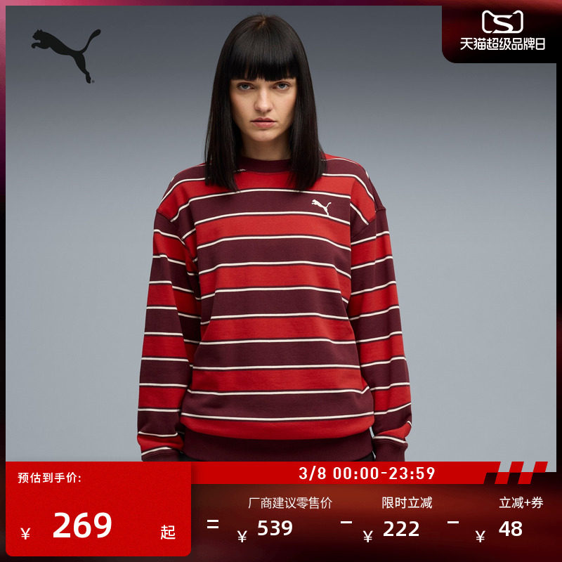 复古红色复古条纹长袖卫衣男女款PUMA彪马官方新款休闲上衣632091