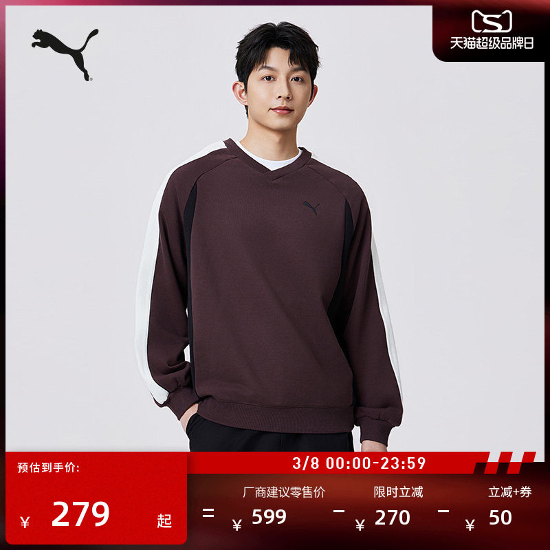 纯棉经典T7宽松V领运动卫衣男子PUMA彪马官方秋冬休闲上衣 637435