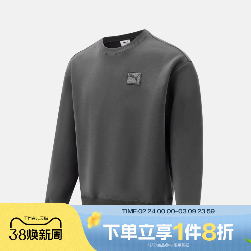 运动休闲卫衣男女简约宽松刺绣圆领套头衫631385彪马puma官方奥莱