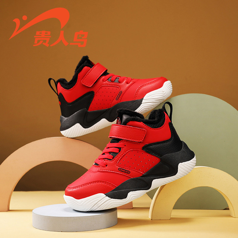 贵人鸟男童鞋加绒加厚运动鞋2025秋冬季新款青少年女孩户外跑步鞋