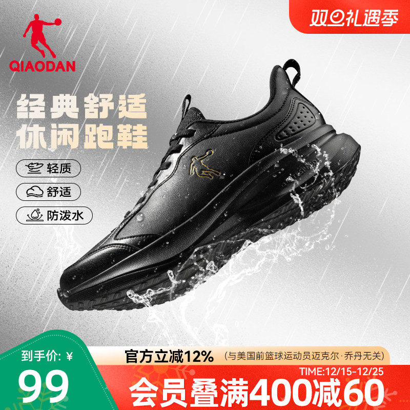 乔丹运动鞋男款冬季新款革面防水跑步鞋减震软底轻便休闲黑色跑鞋