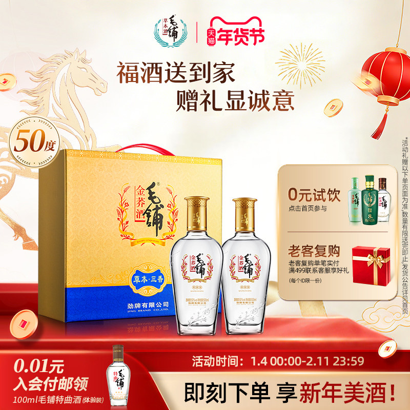 毛铺酒官方旗舰店金荞苦荞酒50度500ml*2瓶礼盒送礼朋友宴请酒水