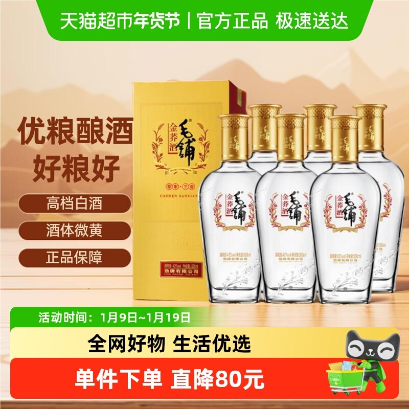 毛铺酒官方旗舰店50度金荞酒500ml*6瓶整箱苦荞酒水正品白酒基酒