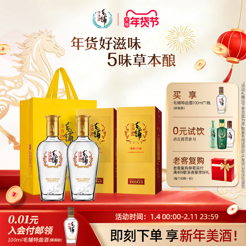 毛铺酒官方旗舰店42/50度金荞酒500ml*2瓶苦荞酒礼盒装白酒基酒水