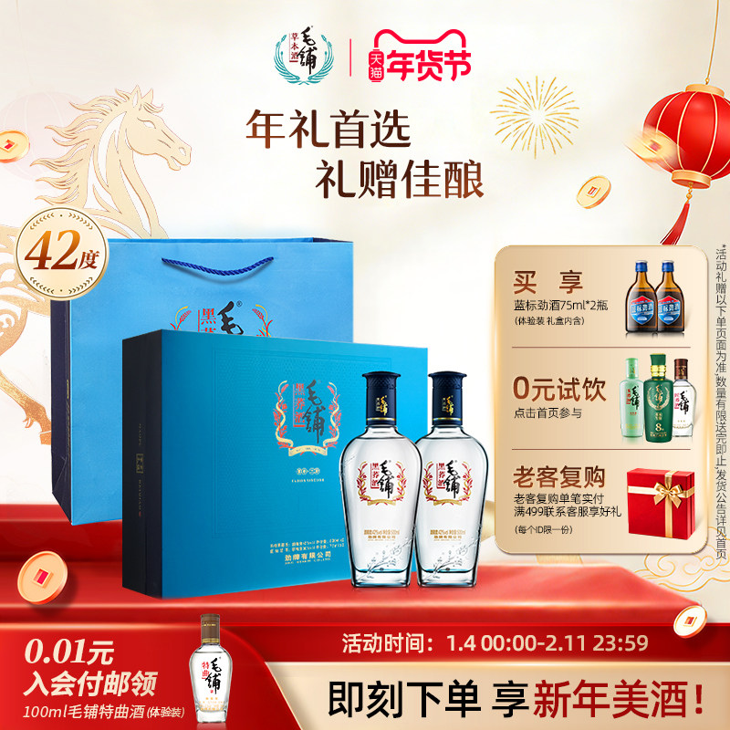 毛铺酒官方旗舰店42度黑荞酒劲酒礼盒装正品苦荞酒高档白酒基酒水