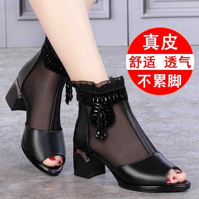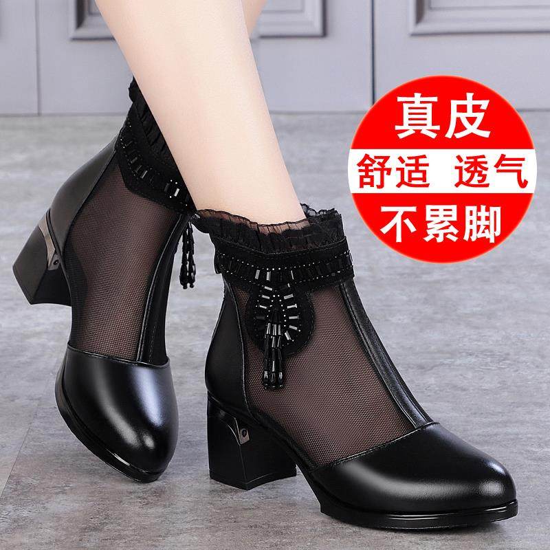 - 真皮粗跟中跟女鞋