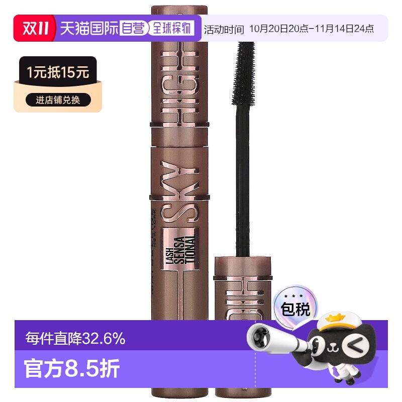 香港直邮Maybelline美宝莲睫毛膏浓黑色自然7.2ml正品防水卷翘