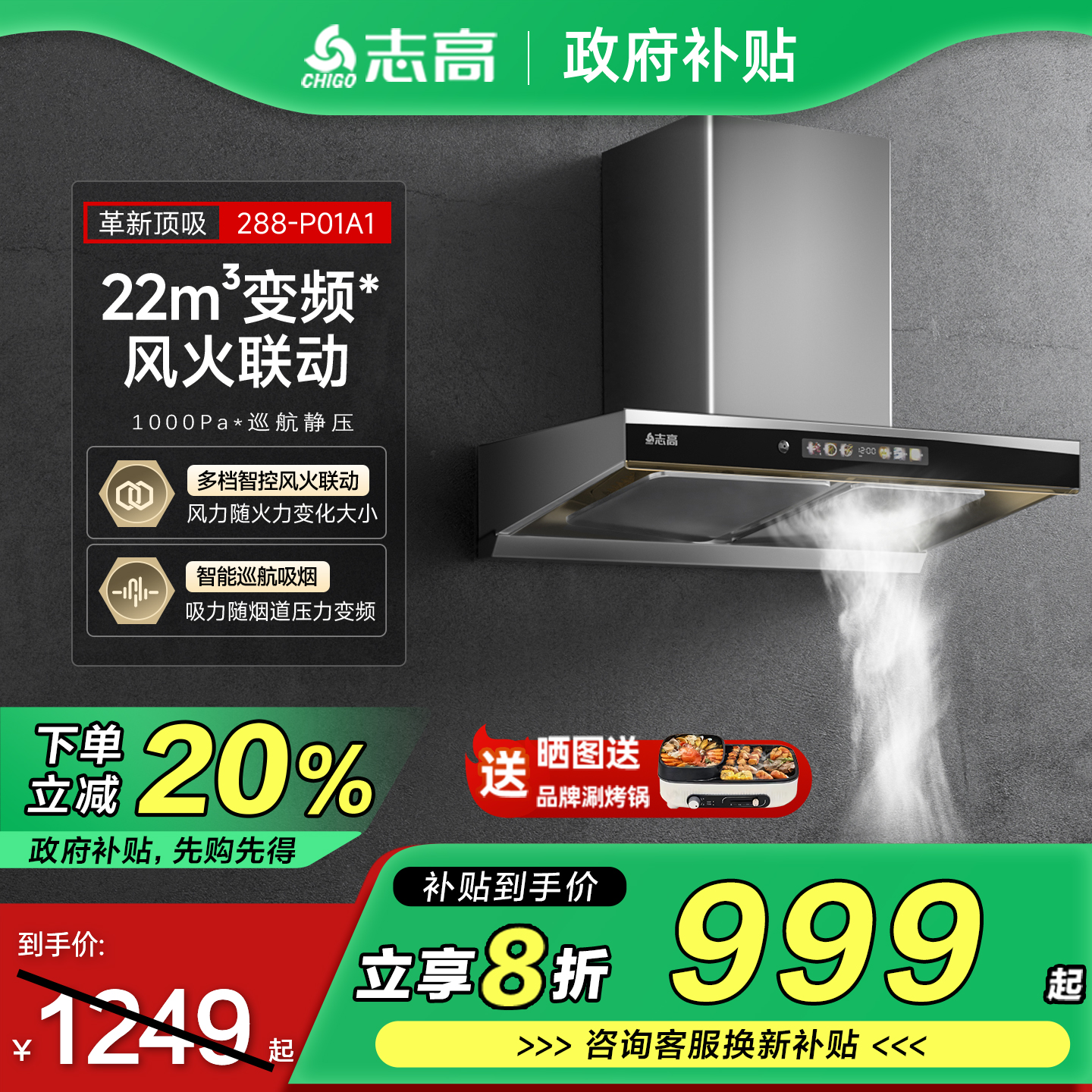 志高家用油烟机燃气灶套餐煤气灶具变频抽油烟机天然气灶烟机套装