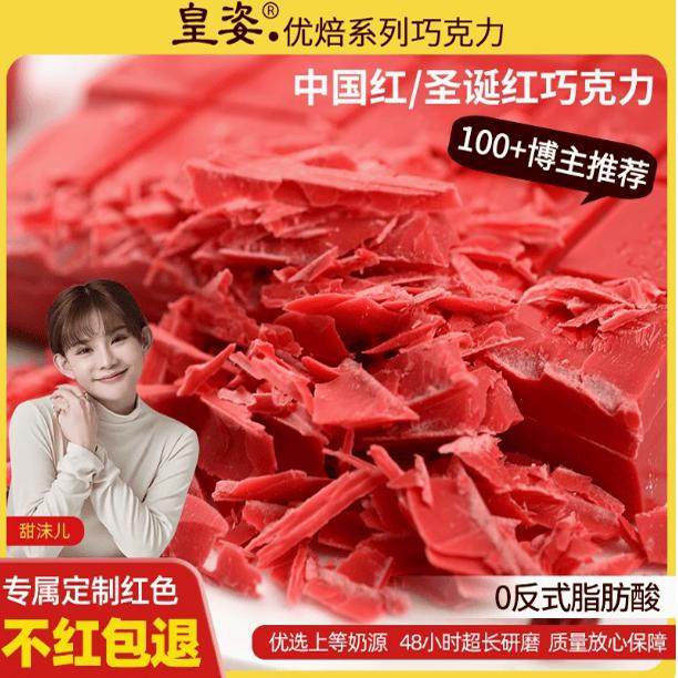 皇姿中国红圣诞红大红色巧克力砖块大版特白diy烘焙原料代可可脂