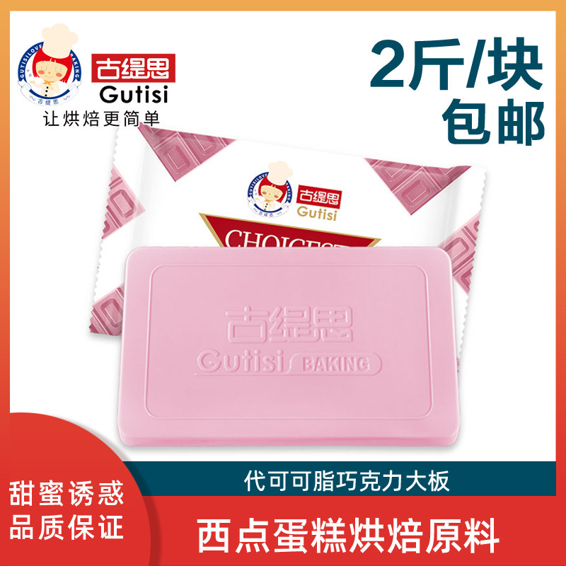 古缇思草莓味粉色巧克力砖大板块蛋糕DIY烘焙原料1kg(代可可脂)