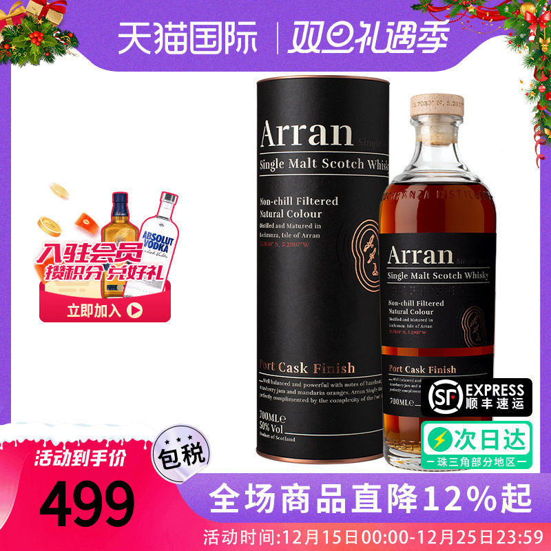 艾伦(Arran)波特桶700ml苏格兰单一麦芽威士忌海外进口洋酒正品