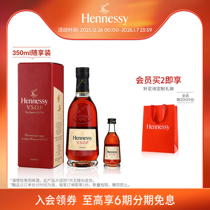 【官方直营】轩尼诗VSOP干邑白兰地350ml随享装+50ml进口洋酒正品