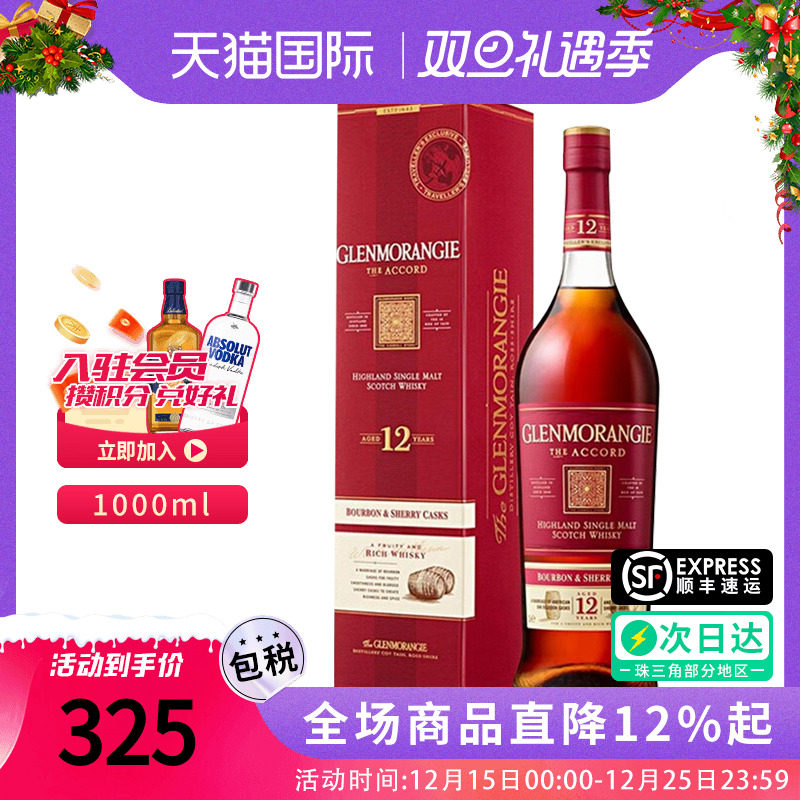 格兰杰12年1000ML经典高地单一麦芽威士忌酒海外原装进口洋酒正品