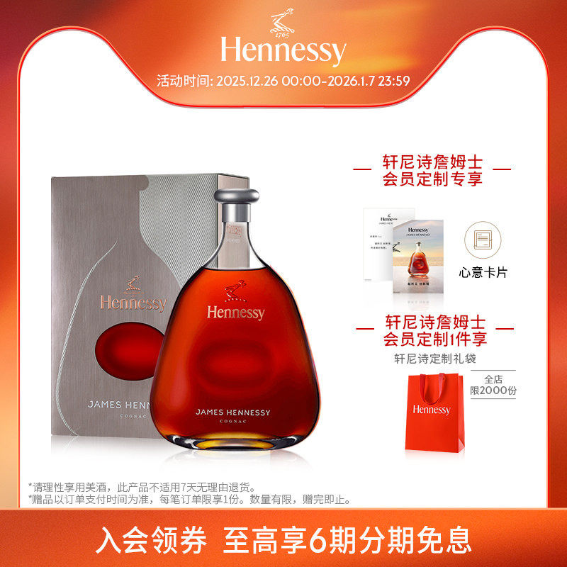 【官方直营】轩尼诗詹姆士干邑白兰地700ml礼盒装进口洋酒正品