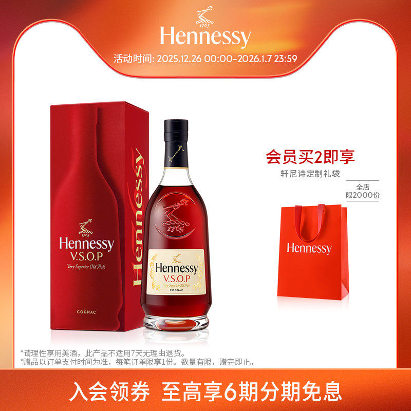 【王嘉尔同款】焕新上市轩尼诗VSOP干邑白兰地700ml礼盒 洋酒正品