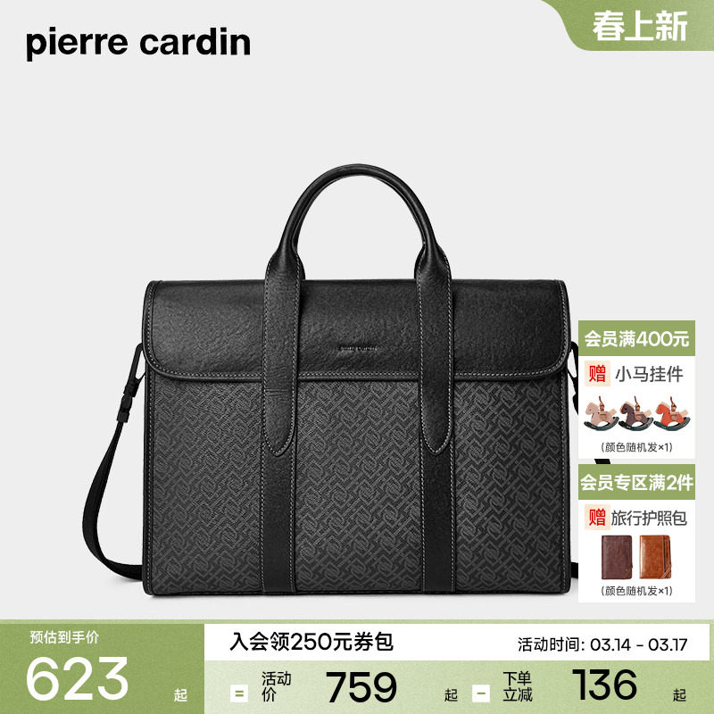 皮尔卡丹新款PVC老花男士公文包男商务撞色拼接手提包实用大容量