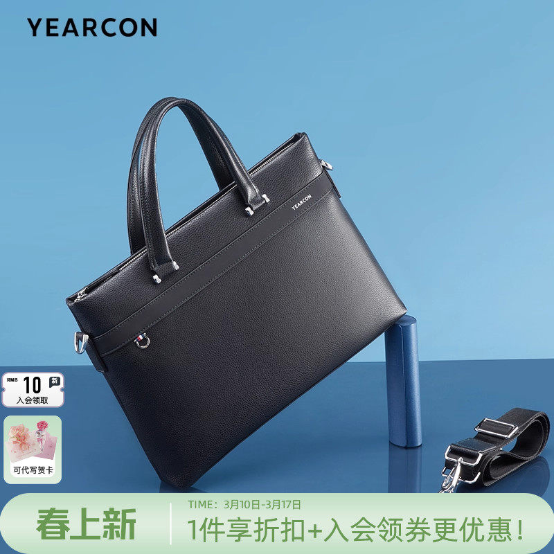 意尔康男士公文包质感商务男包手提包大容量通勤电脑包休闲单肩包